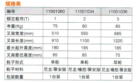 手動液壓搬運車產品規格:
